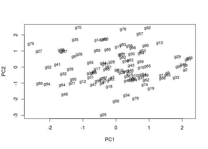 y <- matrix(rnorm(500), 100, 5, dimnames=list(paste("g", 1:100, sep=""), paste("t", 1:5, sep="")))