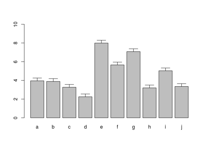 bar <- barplot(m <- rowMeans(y) * 10, ylim=c(0, 10))