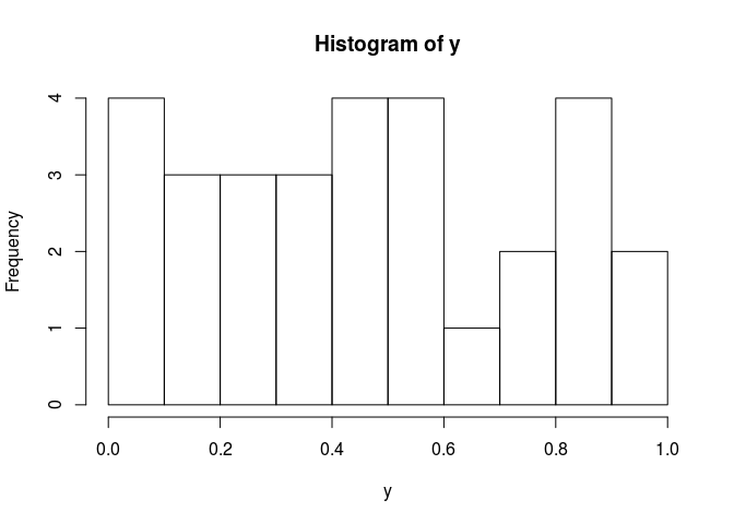 hist(y, freq=TRUE, breaks=10)