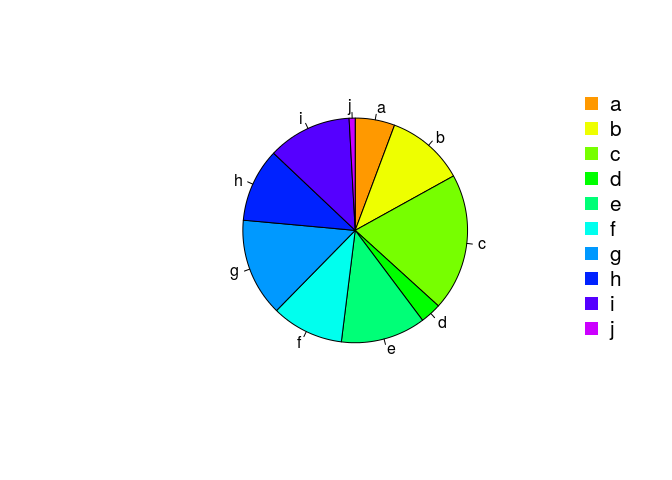 pie(y[,1], col=rainbow(length(y[,1]), start=0.1, end=0.8), clockwise=TRUE)