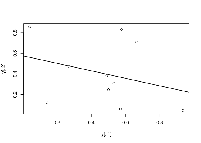 ## lm(formula = y[, 2] ~ y[, 1])
