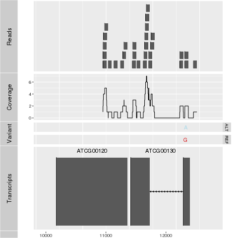 The following plots a selected variant with ggbio.